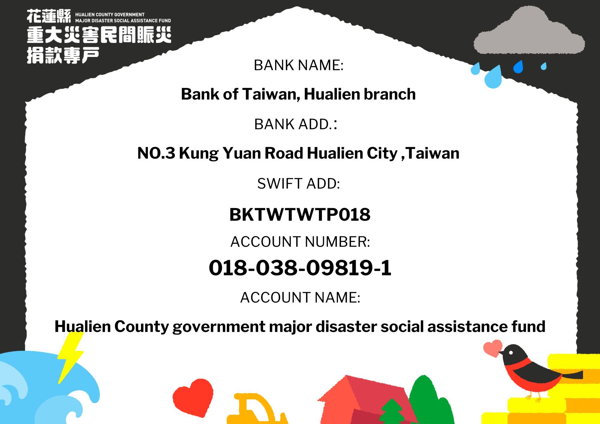 ACCOUNT NAME: Hualien County government major disaster social assistance fund