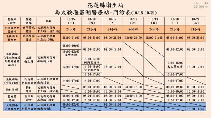 馬太鞍堰塞湖醫療站門診表