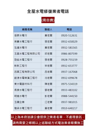 全屋水電修復業者電話